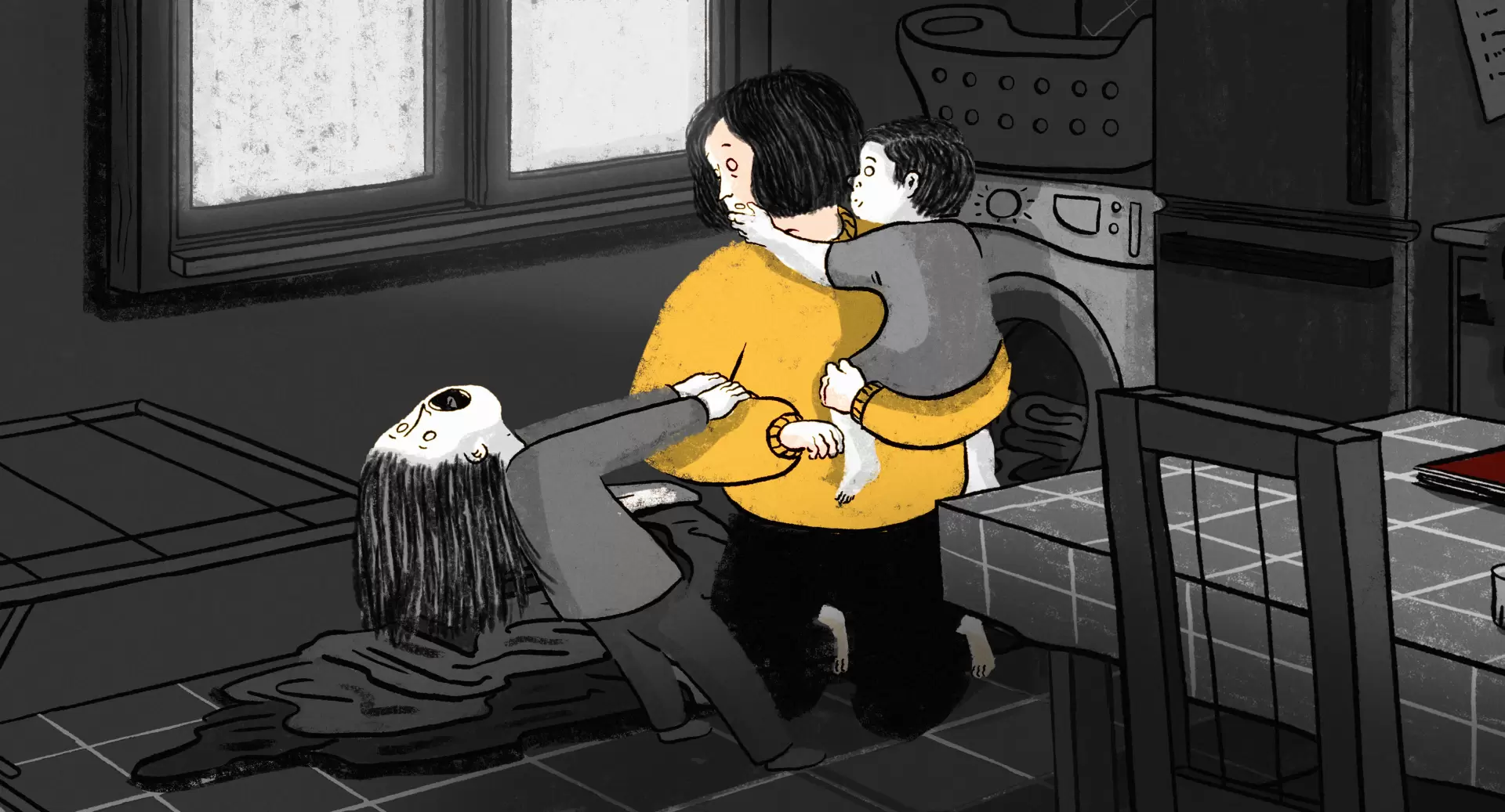 It's Saturday, and a woman struggles with the difficulty of reconciling her home life and her need to escape.