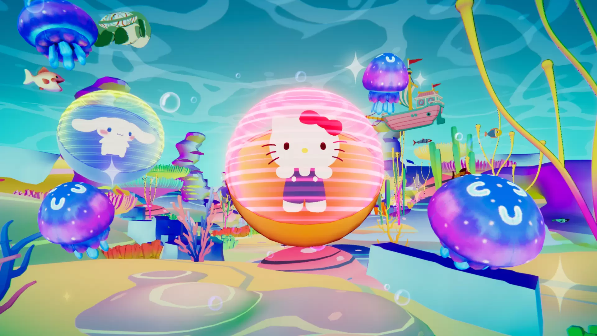 在機器龜的引領下,Kitty、大耳狗喜拿與酷洛米一同來到神秘的AI龍宮城。 這裡是AI乙姬所居之地,一切皆可隨心所欲地生成與創造…… 在這個奇幻異境中,你將會創造出什麼樣的未來?